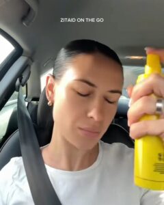Partenerul său, Zitback, este un spray fără ulei, formulat cu acizi BHA(salicylic), AHA(glycolic) și apă de lămâie.